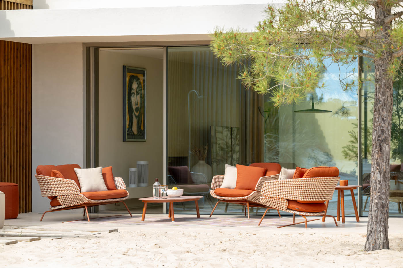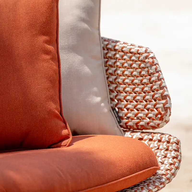 A Phil 2 személyes szófa a Jati Kebon Signature kollekciójának kifinomult darabja, mely organikus formáival és prémium anyaghasználatával emelkedik ki. Santiago Sevillano tervezte, ez a szófa a természetes ívek és finom sziluettek elegáns találkozását mutatja be. Elérhető rozsdás és zöldes árnyalatban, amelyek karaktert visznek a térbe és harmonikusan illeszkednek a kert vagy terasz növényeihez. Időjárásálló fonott szerkezete tartós anyagból készül, míg puhán párnázott ülőfelülete UV- és időjárásálló textíliákból áll, hogy minél hosszabb ideig megőrizze komfortját és szépségét.