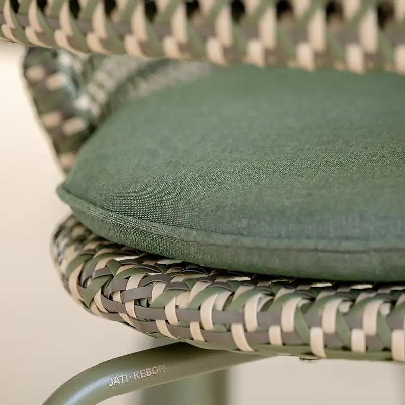 A belga Jati Kebon a legjobb alapanyagokkal dolgozik, és kizárólag kiváló minőségű textileket használ bútoraihoz, hogy vásárlóik a lehető legnagyobb kényelemben élvezhessék a teraszuk nyújtotta lehetőségeket. Kerti bútoraik porszórással festett alumínium váza nemcsak könnyű, de a felületkezelésnek köszönhetően időjárásálló, UV álló és strapabíró is, melyek a jachtok fedélzetén is használt Sunbrella szövetanyaggal kiegészülve válnak igazán különlegessé. A gyönyörű és kiemelkedő minőségű kültéri kárpitok vízlepergetőek és tökéletesen UV állóak, a speciális Quick Dry Foam belsőnek köszönhetően rendkívül kényelmesek és pillanatok alatt megszáradnak a szabad levegőn.