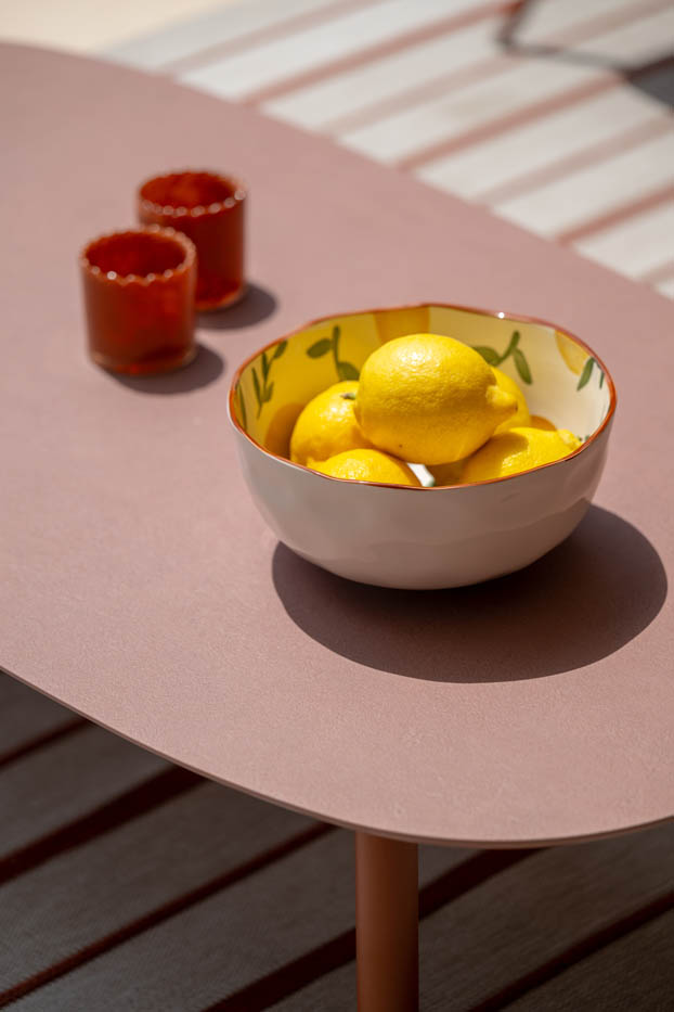 A Phil kávézóasztal modern megjelenését a letisztult alumínium váz és a prémium minőségű kerámia tetőlap tökéletes harmóniája adja. Tartós, időjárásálló anyagainak köszönhetően hosszú éveken át megőrzi elegáns megjelenését a teraszon vagy a kertben. Egyedi, formabontó színei köztük a karakteres rozsdavörös és zöld árnyalat különleges, mégis természetes összhatást keltenek, így könnyedén illeszkedik a Phil kollekció többi darabjához.